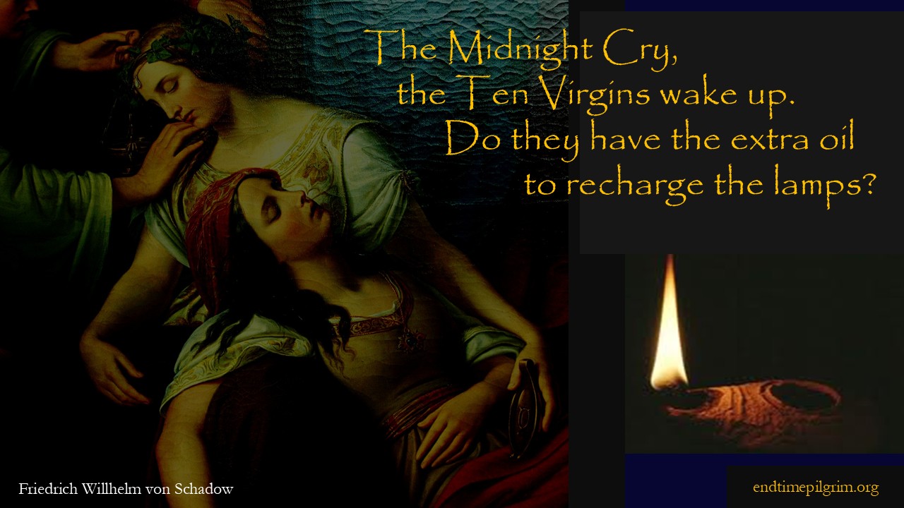 This matter of the extra oil is exceedingly important. Here we see a reserve supply of oil that went along with the wise virgins as a matter of course. This extra resource was quite separate from the oil that was in their lamps. The oil the wise carried in their lamps was no greater in supply than the oil in the lamps of the foolish. All ten of them saw their lamps beginning to burn out as the midnight hour approached. So this extra oil supply was not a superabundance overflowing from within the lamps of the wise. The wise virgins certainly had extra oil with them. But that extra was not in their lamps. The extra oil came from another companion vessel that they carried with them.