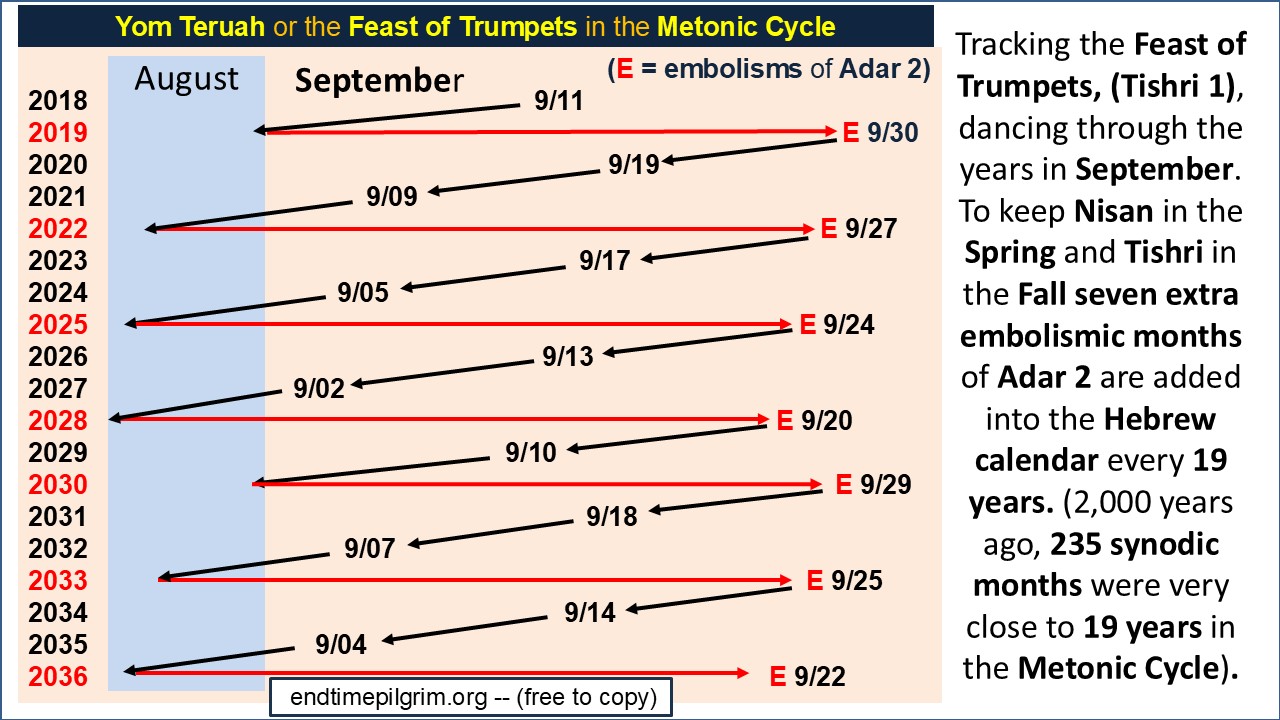 The Feast of Trumpets, Tishri 1 on the Hebrew Calendar, in its Metonic Dance across the Fall Season in the month of September.